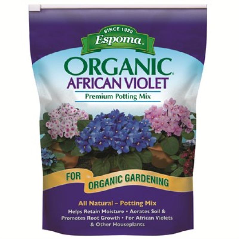 Improves aeration and moisture retention for African violets and other houseplants. Part of a complete line of potting mixes and soil amendments that can be used for organic gardening. Each mix contains a rich blend of only the finest natural ingredients. No synthetic plant foods or chemicals are used. All natural and organic, premium quality blends.