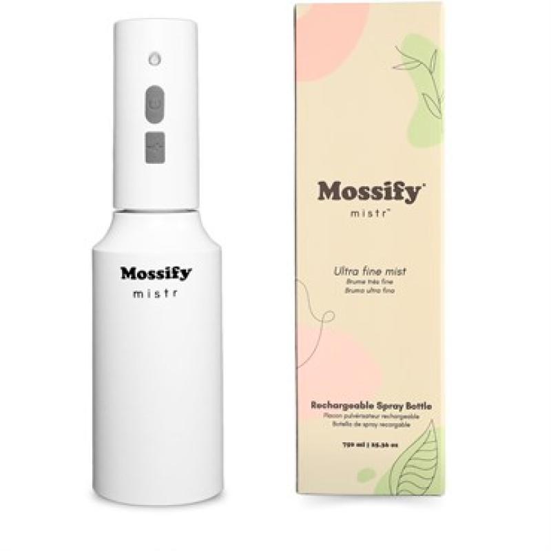 The Mossify mistr features a rechargeable battery for long life. The mistr was deigned not to be stored away, but to be showcased on the plant shelf. The sleek design and amazing capabilities of this mistr go unmatched. Mainly used for misting water on house plants, this mister can also be used for disinfecting and water-soluble chemicals.