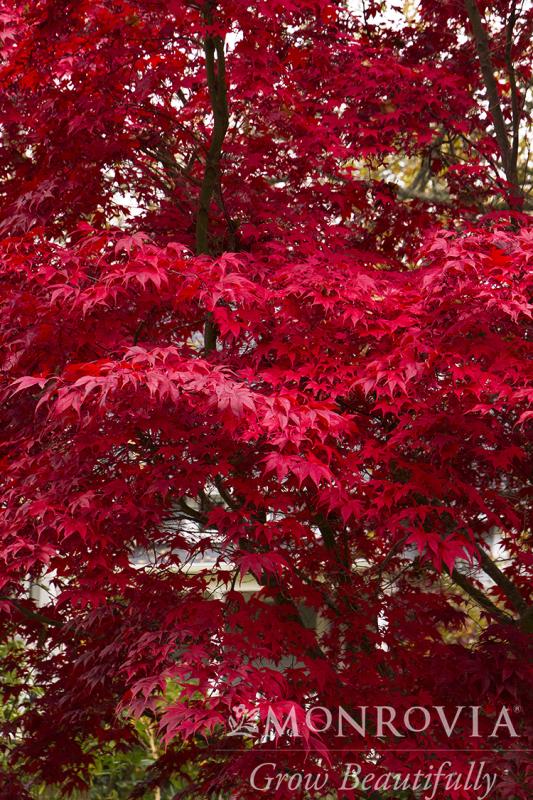 Bloodgood Japanese Maples are versatile and will grow in partial shade or full sun. So, you don't have to worry about tall shade trees nearby or shade from close structures. It's foliage stays scarlet for more than just a few weeks like many other varieties. Though the color occasionally fades in high heat, you still get months of amazing visual interest. And it's a small tree that you can plant near your home, patio or tight places.