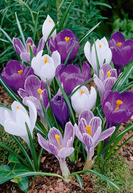 Grass-like foliage surrounds this chalice shaped flower. Carefree and naturalizing; these bulbs signal the end of winter. Crocus are easy to grow in well-drained soil in full sun or partial shade.