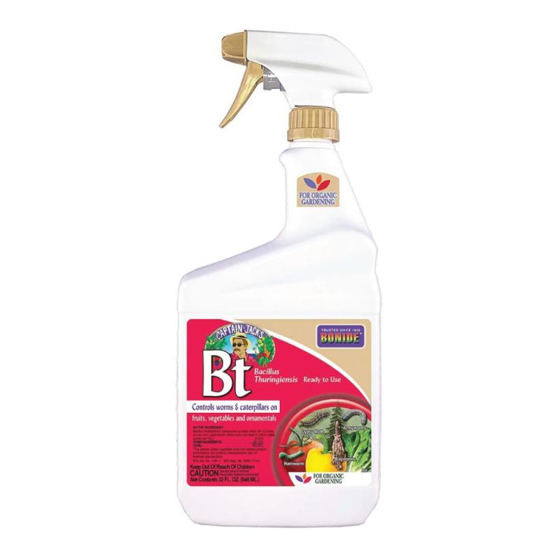 Protect your oasis with Captain Jack's Bt Thuricide Ready-to-Use Spray; this product controls cabbage looper, hornworms, tent caterpillars and more Protects fruits, vegetables, shade trees and ornamentals; designed for use on broccoli, cauliflower, kale, mustard greens, eggplant, pepper, melons, tomatoes, cabbage, and more
