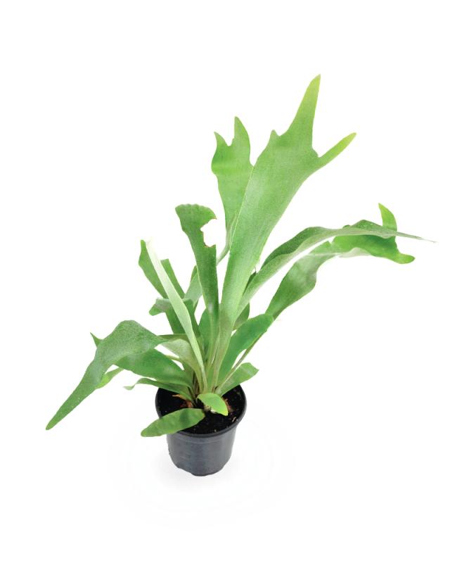 The staghorn fern is the perfect addition to your home. They absorb water through their irregular shaped leaves or fronds as well as their roots. You'll often see staghorn ferns mounted on a wooden board with sphagnum moss. They like bright indirect light and for their soil or potting medium (sphagnum moss) to slightly dry out between waterings. If properly cared for, these plants can live for decades and grow up to 2-3 feet wide