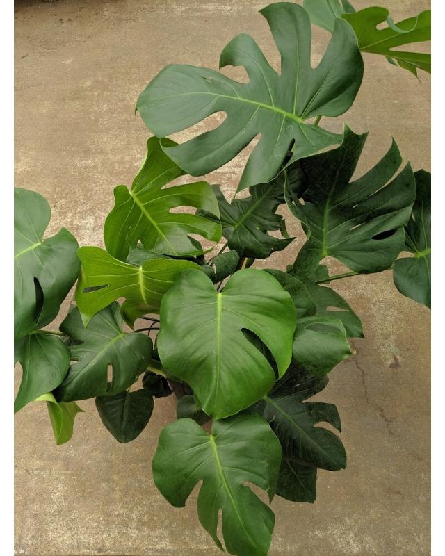 The monstera, also known as the Swiss cheese plant, is native to Central America. These plants can reach up to 15 feet tall and 8 feet wide, so be prepared to accommodate this fast growing plant. They like lots of bright indirect light and to be in temperatures of 65-75 degrees. Because monsteras like to be watered when the first few inches of soil are dry, they'll need a evenly moist but well draining potting mix. A mix of potting soil, perlite, and orchid bark will do the trick. There are many different types of monsteras ranging from the extremely rare variegated plants, to the more common deliciosa, adansonii, and more. Monsteras are also a climbing plant, so make sure your plant is properly supported as it grows!