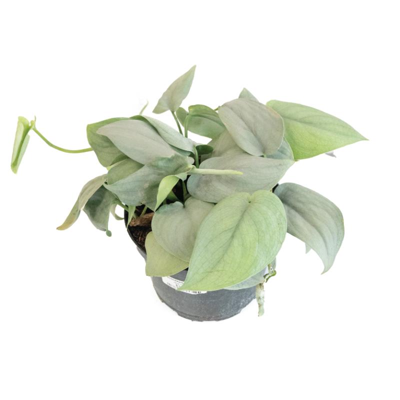 The scindapsus, also called a satin silver pothos, is a popular vining houseplant. With silvery satin-like leaves, the scindapsus likes lots of bright indirect sunlight and temperatures above 60F. Don't let your scindapsus completely dry out between watering, water when the first 3 inches or so are dry. This plant can be overwatered fairly easily so make sure it is planted in a well-draining soil mix that has lots of orchid bark and perlite.