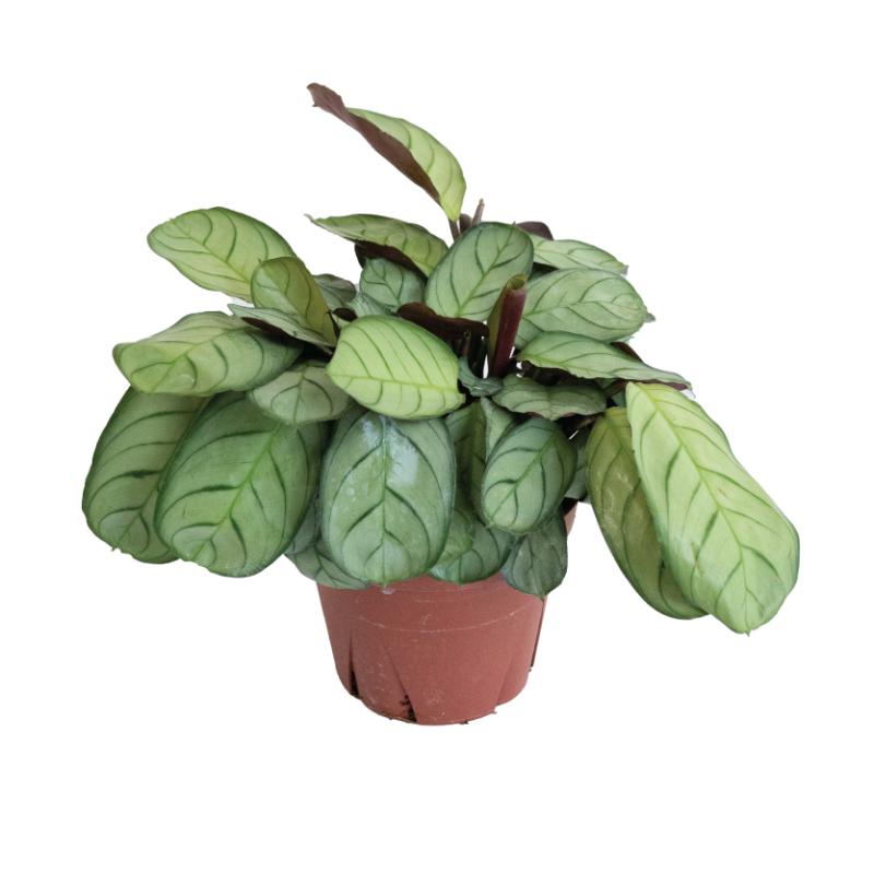 Native to Central and South America, the calathea require the right conditions to thrive. The calathea has many common names including the prayer plant, the rattlesnake plant, or the peacock plant. They love bright indirect light and a light, well-draining potting mix. Keep them out of direct sun and make sure their soil stays evenly moist, but not wet. A good rule of thumb is to water when it is about a third dry.