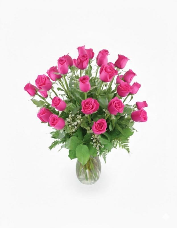 A classic arrangement of three dozen roses, carefully selected for uniform size and vibrant color. Each bloom is fresh and fully formed, artfully arranged with lush greenery to enhance their natural beauty. Presented in a glass vase, this timeless bouquet conveys sophistication, romance and thoughtful sentiment. Perfect for celebrating special occasions or expressing heartfelt emotions. Approximately 22" tall
