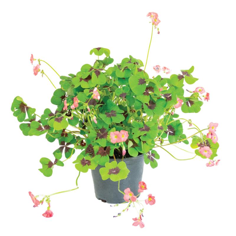 The Oxalis, also known as a shamrock plant, lucky clover, or wood sorrel has large 4 or 3 clover-shaped leaves. They also come in different colors like purple or green and have different bloom colors as well like white, purple, pink, or yellow. They are native to pretty much everywhere on earth, excluding Antarctica. The oxalis move a lot and are always facing the direction of the light, they also open up and are flat during the day and close up their leaves, like an umbrella, when the sun goes down. They can be planted in the garden but people like them as houseplants. Oxalis like fast-draining soil with added sand or perlite. They do like humidity, so consider misting, having a pebble tray, or a small humdifier nearby.