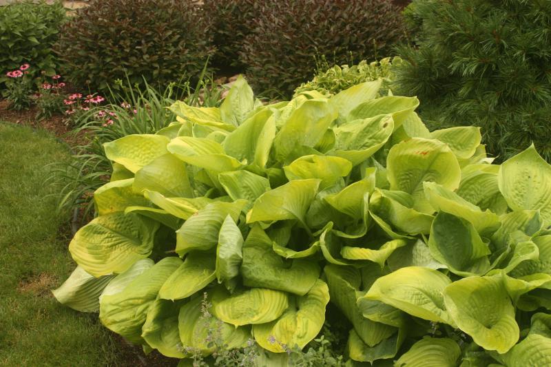 General Information: Heart-shaped, golden chartreuse leaves become more puckered as the plant matures. Requires sunlight to bring out gold coloring. White flowers. Good plants for the shade garden, the border and for containers. Excellent as ground covers or for edging.