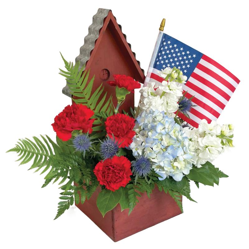 Honor House is the perfect patriotic arrangement for any occasion. With red, white and blue blooms, this combination is a heartfelt symbol of freedom and remembrance.