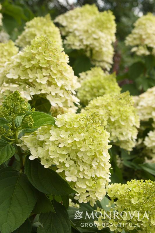 This unique panicle hydrangea revolutionized landscaping across North America. Huge, football-shaped flowers open in an elegant celadon green that looks fresh and clean in summer's heat. The blooms age to an array of pink, red, and burgundy which persists through frost for months of irresistible flowers. You can use 'Limelight' hydrangea just about any way you can imagine: as a showy flowering hedge, to screen off air conditioners, as an attention-getting specimen, in containers, flower gardens, or anywhere around your home. A long-time favorite of professional florists, it also makes an excellent cut flower, fresh or dried.