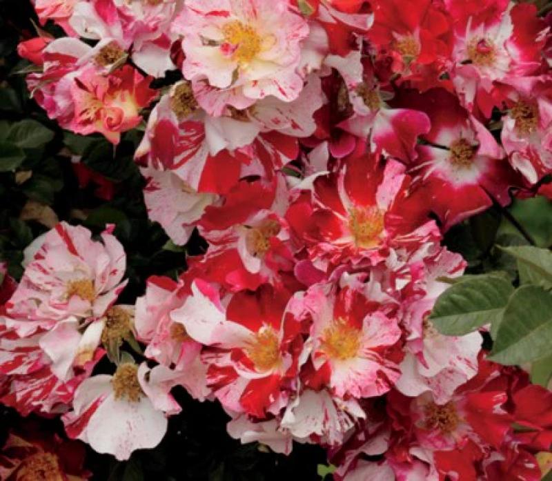 Climbing roses, like the Fourth of July Rose, are treasured for their ability to elegantly cover horizontal and vertical surfaces in the garden. Hardy and floriferous, climbing roses bloom throughout the summer months. Celebrate profuse clusters of sweetly scented, semi-double blooms from late spring to fall. This All-America Rose Selection winner has velvety red and white striped blooms and attractive, deep green foliage. Growing 10-14' tall with a similar spread, this colorful rose has excellent disease resistance. Plant in full sun to partial shade.