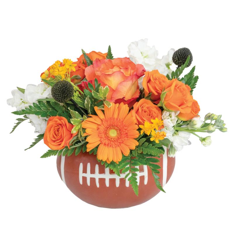 Celebrate football season with your favorite teams' colors! Whether it's for a tailgate or to celebrate that big win, show off those game day colors with a football shaped vase and choose from an orange and black or red and white theme. Have a favorite team not in Cincinnati? Give us a call to talk about more team themed options.
