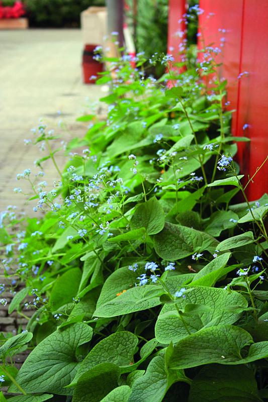 General Information: Clump-forming perennial with massive, long-stalked, heart-shaped leaves that are dark green with bubbly, rough-textured surface. Sprays of small, purple-blue, Forget-Me-Not-like flowers in early Spring. For the shady border or open woodlands. A good ground