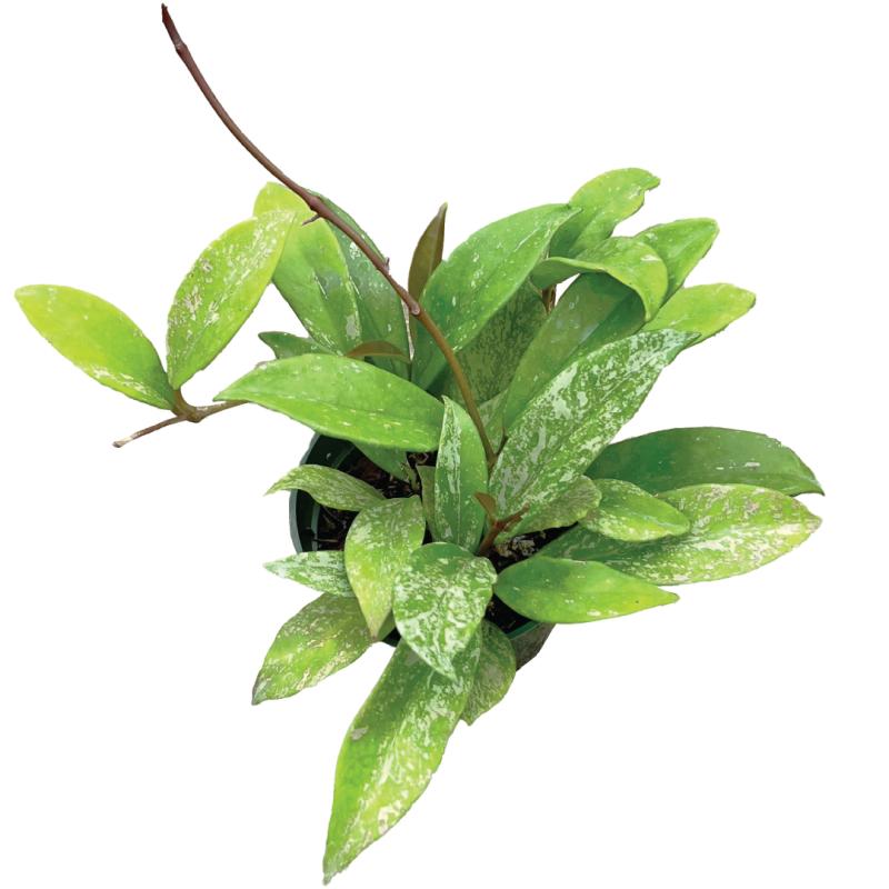 The hoya, also commonly known as wax plants, are native to Asia. And hoyas will bloom if at maturity and given the right care. Their blooms come in multiple colors but usually present as star-shaped and clustered together in a circular shape. Hoyas will trail or vine so potting it in a hanging basket or wrapping the vines around a trellis is something to keep in mind. They require a well-draining soil mix, a regular potting soil with added perlite and orchid bark will do the trick. Hoyas should dry out completely between waterings but they like a humid environment. With hundreds of varieties, the Hoya is a sought after houseplant.