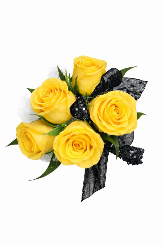 An image of Yellow Spray Rose Corsage Black Bracelet An image of Yellow Spray Rose Corsage Black Bracelet An image of Yellow Spray Rose Corsage Black Bracelet An image of Yellow Spray Rose Corsage Black Bracelet