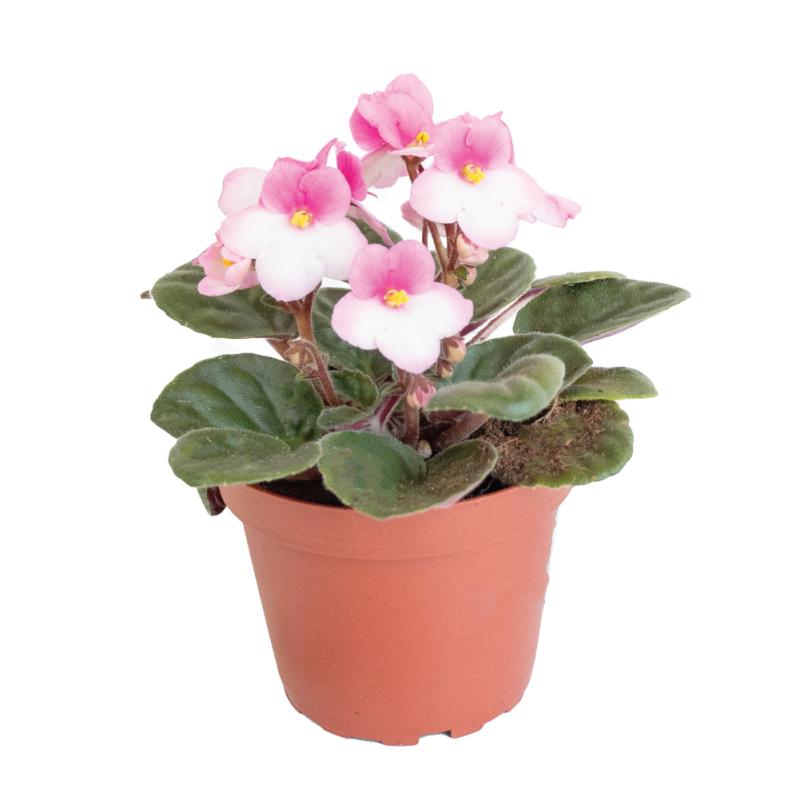 The African violet is among the most popular houseplants, blooming almost continuously throughout the year. They have fuzzy leaves and their bloom colors range from white to pink, to purple and blue. African violets love bright indirect light and a humid environment. They need a fast-draining soil mix, specific them. The African violet does not like to dry out so keep the soil moist but don't allow the plant to sit in water. Bottom watering this plant will prevent damage to it's leaves, let it sit in a tray or bowl of water for a little while to soak up what it needs.