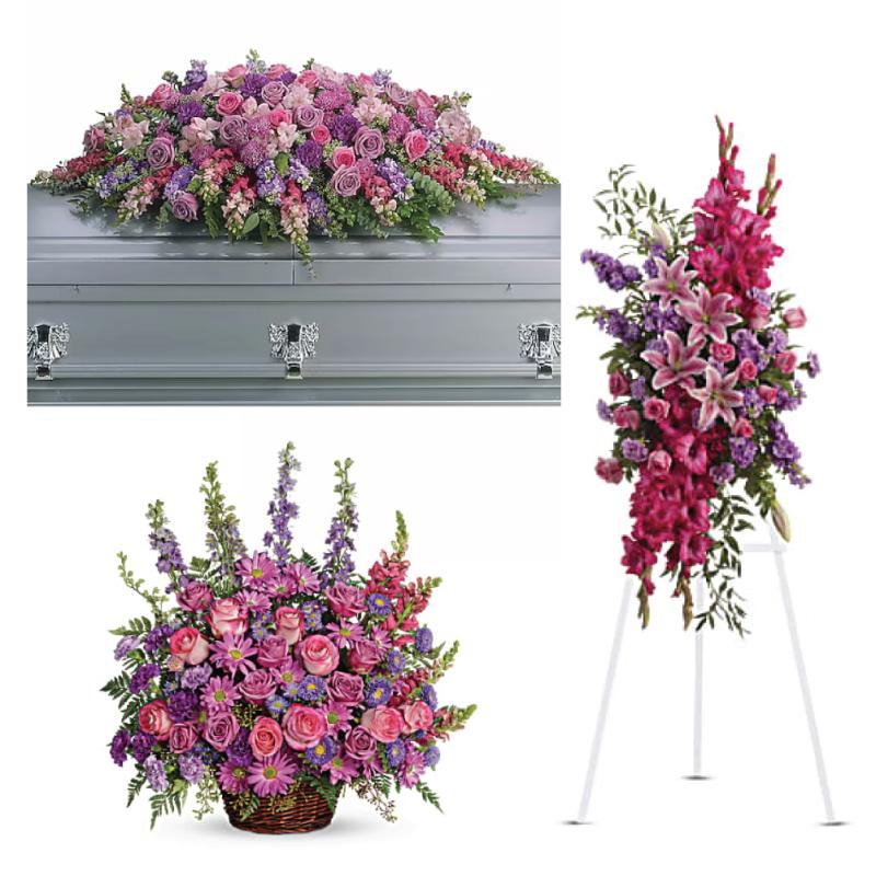An image of Joyous Full Tribute Funeral Package An image of Lavender Tribute Casket Spray An image of Touching Tribute Spray An image of Gracious Lavender Basket