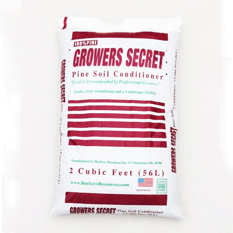 Growers Secret Pine Soil Conditioner helps retain moisture Lowers soil ph, adds organic matter to improve soil Ideal amendment for new trees, shrubs, Azaleas, rhododendrons and evergreens Available in 2 cu. ft. Bags